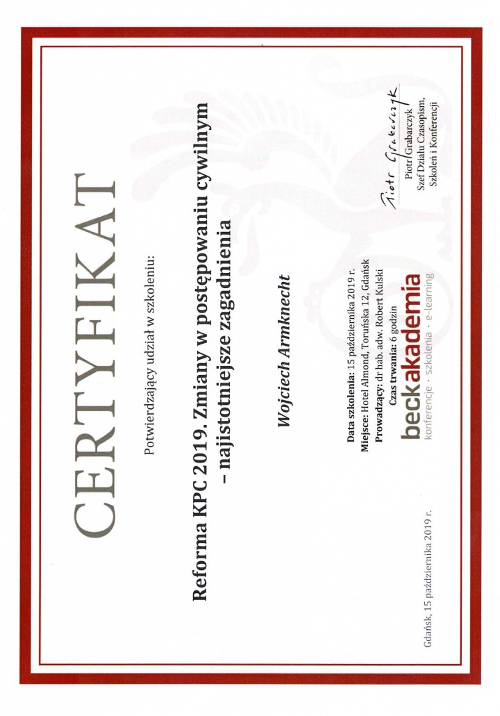 Kancelaria Prawna w Gdyni ADVISER Armknecht & Partners attorneys-at-law | Prawo procesowe - postępowanie cywilne / Civil litigation